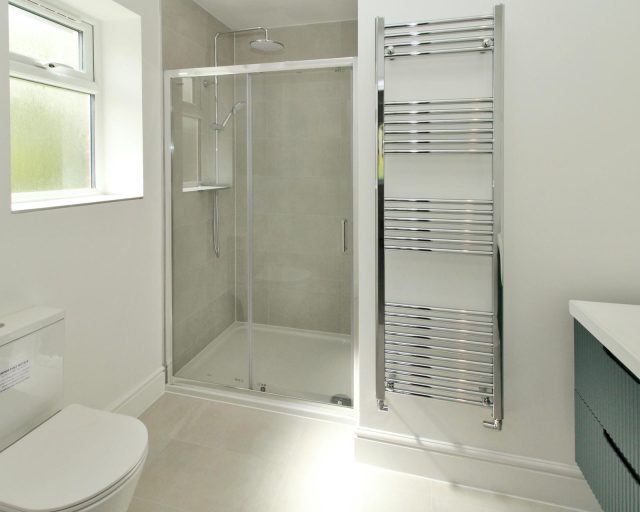 - Samsung air source heat pump paired with a large Kodiak unvented hot water cylinder – built to comfortably meet modern hot water demands