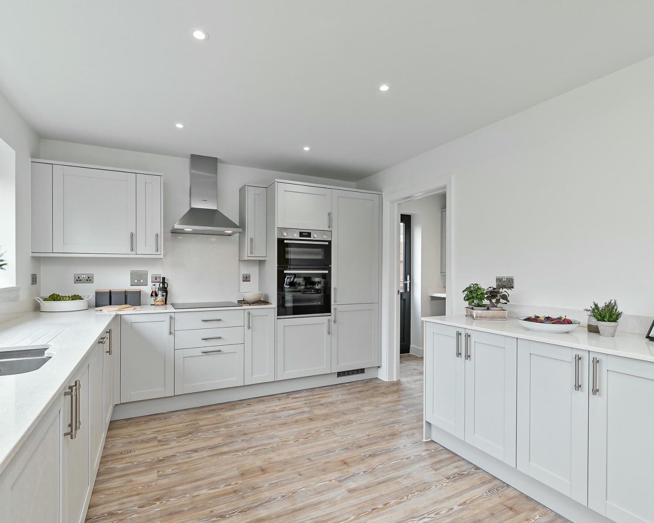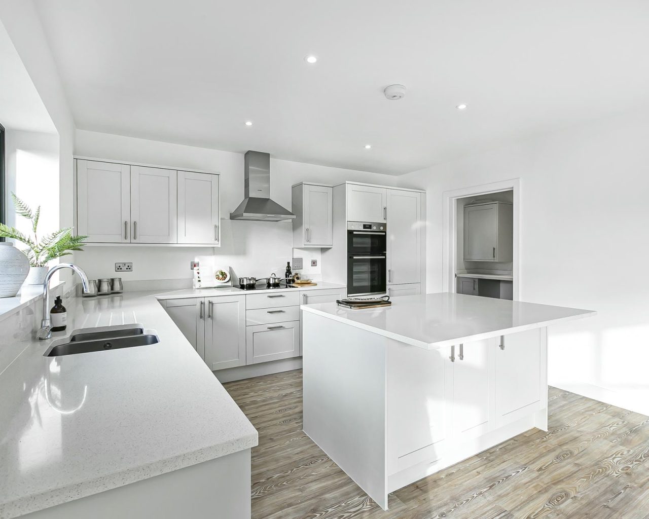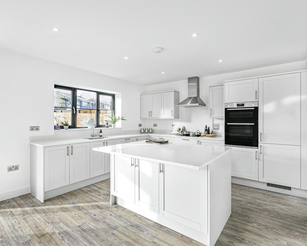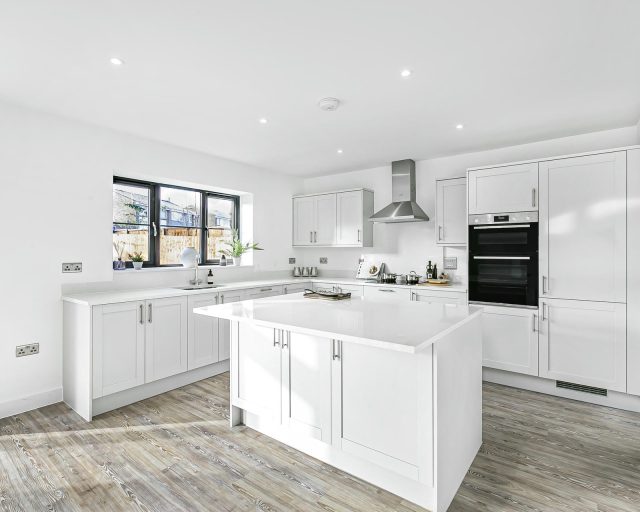 - Integrated appliances including fridge freezer, dishwasher, washer dryer and induction hob