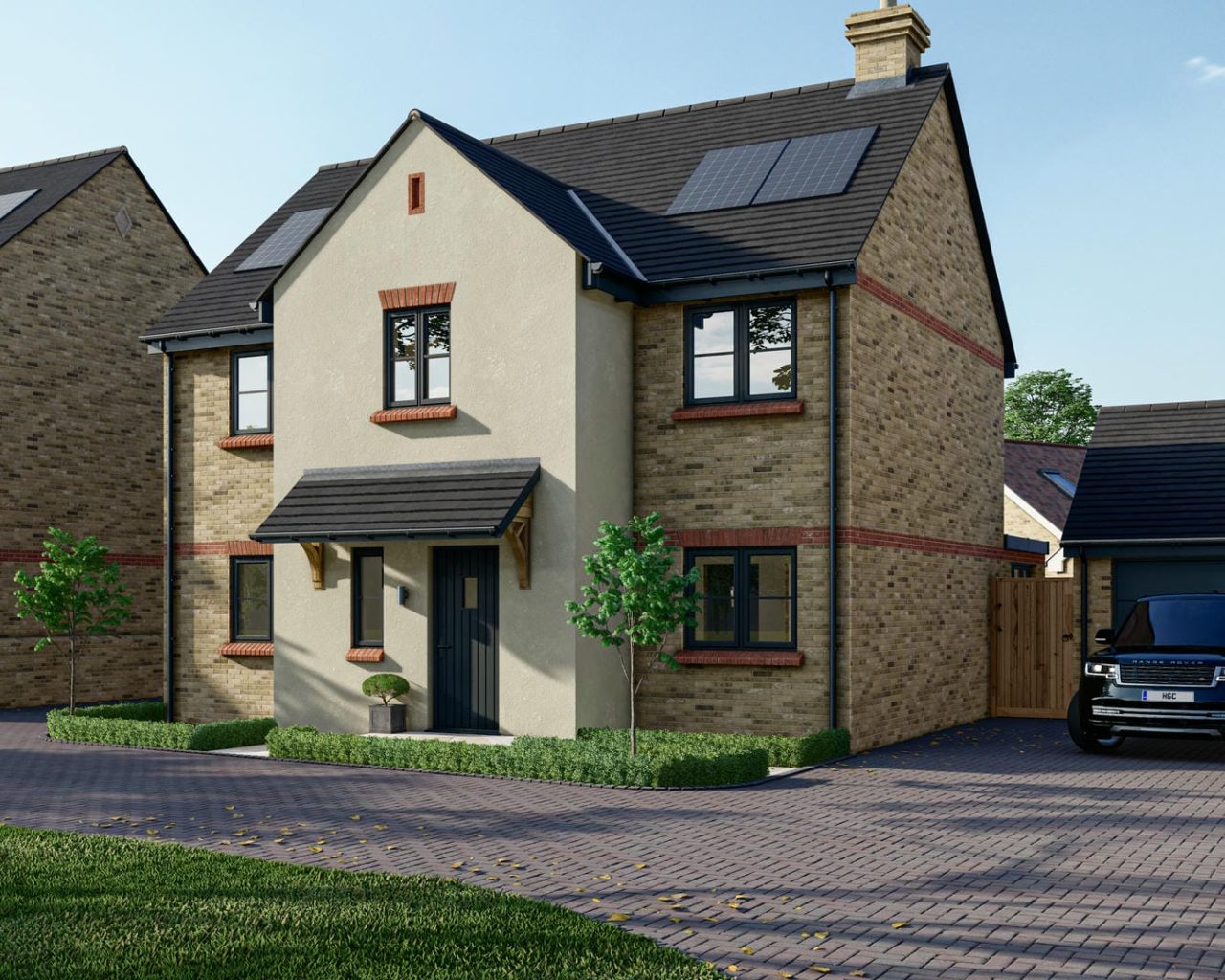 - Driveways finished in keyblok charcoal grey